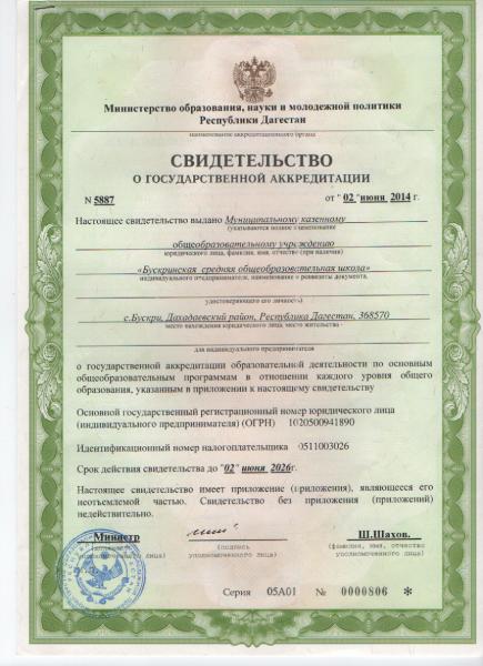 | Адрес местонахождения образовательной организации* | 368581, РД, Дахадаевский район, с. Бускри |